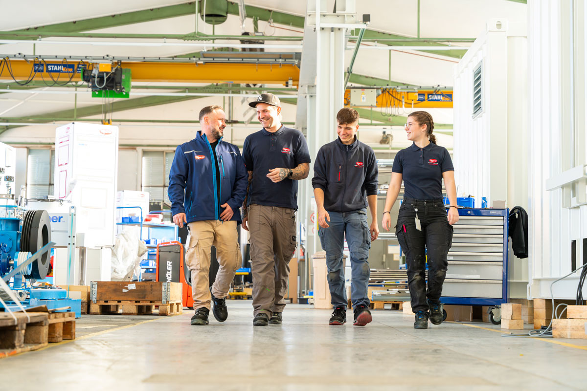 Während der Probezeit finden mehrere Feedbackgespräche statt, anschließend folgen regelmäßige Mitarbeitergespräche zur persönlichen Weiterentwicklung. Unser Arbeitsumfeld ist geprägt von Teamgeist, Vertrauen und gegenseitiger Unterstützung.