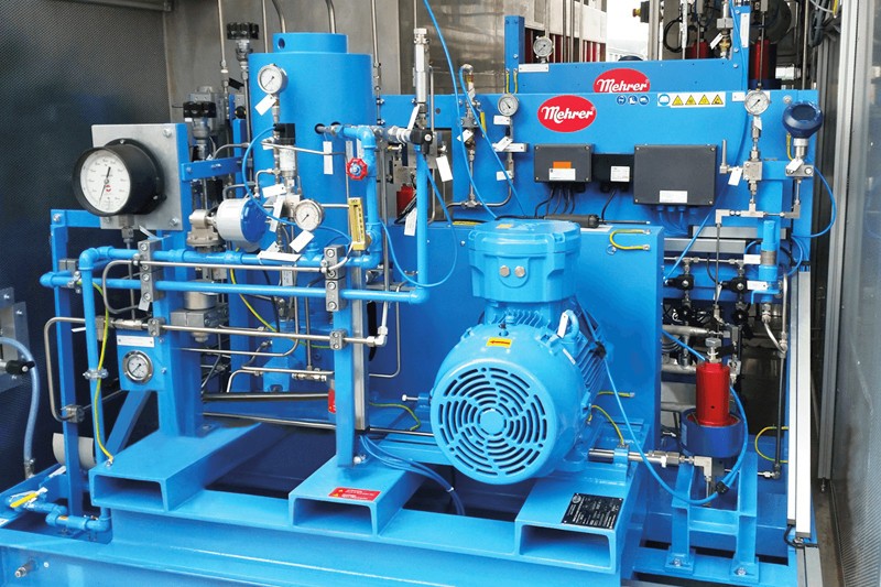 Die Drücke des durch einen PEM-Elektrolyseur erzeugten Wasserstoffs liegen bei 30-100 bar und müssen für die Fahrzeugbetankung auf die erforderlichen 700 bar erhöht werden. Für diesen Prozess wurde der Membranverdichter MRE 300 eingesetzt, der den Wasserstoff in zwei Schritten verdichtet: zunächst auf 300 bar und anschließend auf 935 bar, um ihn in Hochdruck-Pufferspeichern bereitzustellen.
